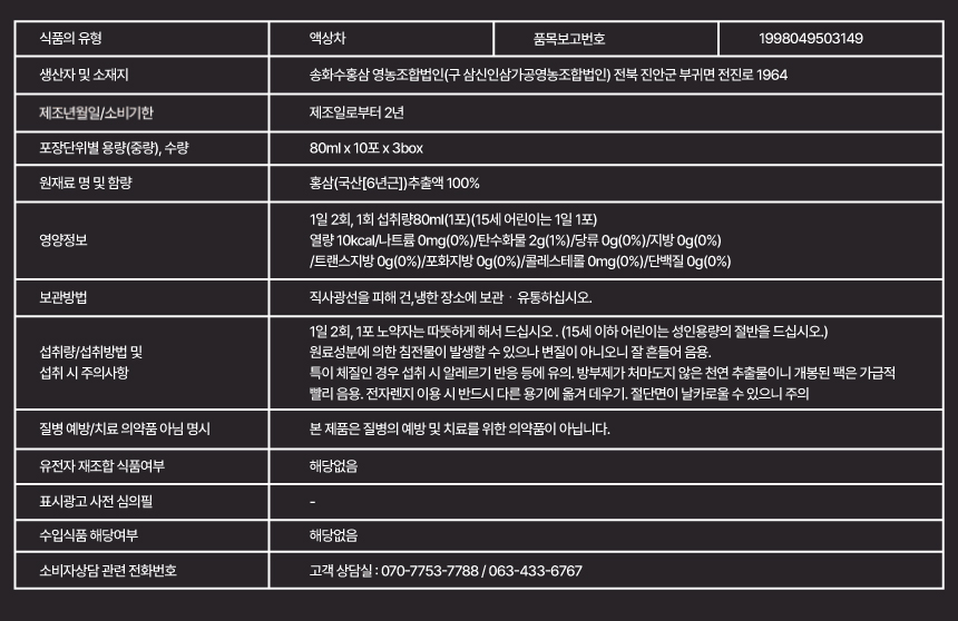 홍삼순액 홍리수 80ml x 30포